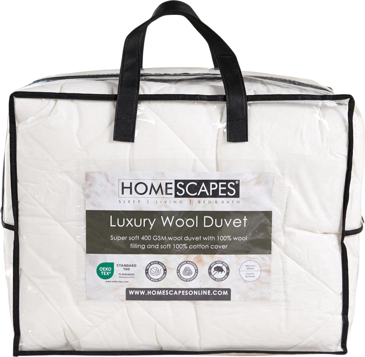 Homescapes – Schapenwollen Dekbed 240×220 cm van Homescapes, gemaakt van Schapenwol. Voorzien van een Katoen tijk en warmteklasse Warmteklasse 1. Voor wie op zoek is naar natuurlijke warmte en comfort.